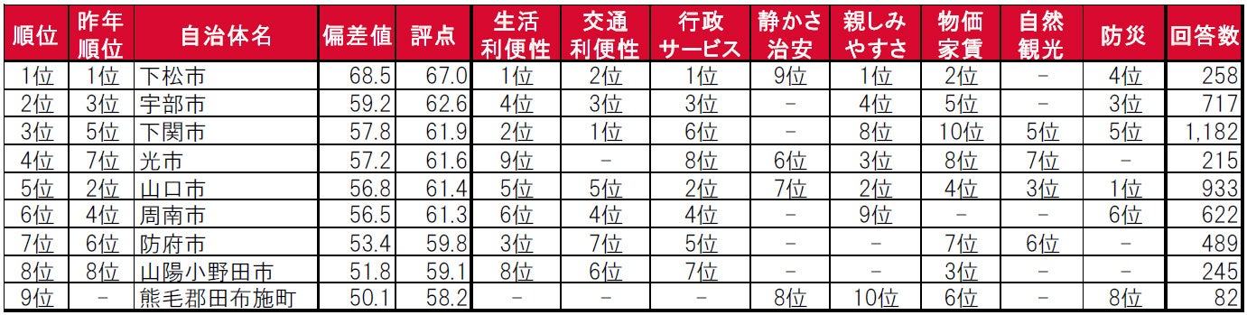 - 街の住みここちランキング2022<山口県版>自治体TOP9 因子別順位