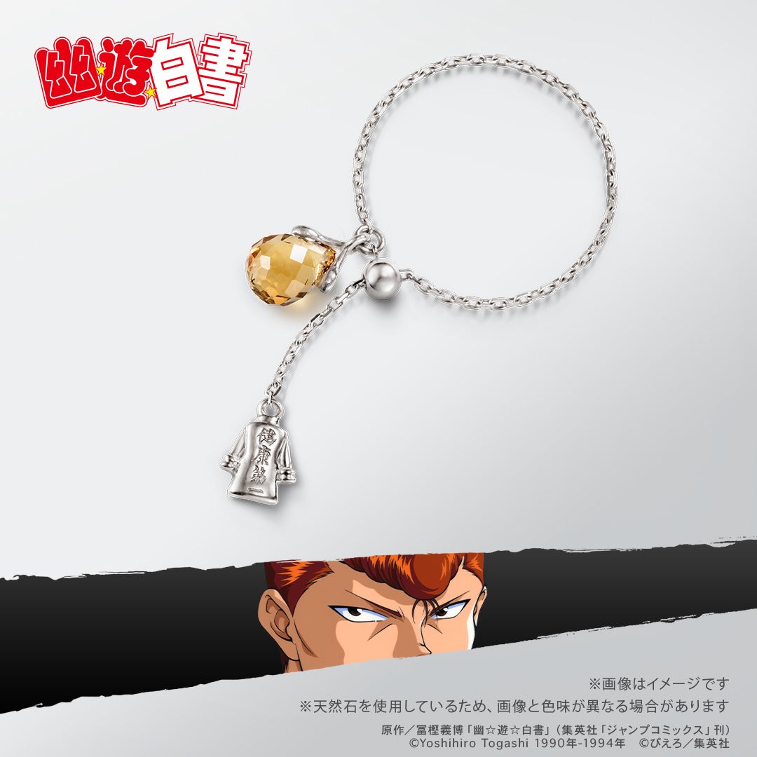【幽☆遊☆白書】チェーンリング(指輪)4種類。幽助・桑原・蔵馬・飛影をイメージしたブリオレットカットの天然石&チャームが揺れるデザイン。8月30日(金)まで予約受付