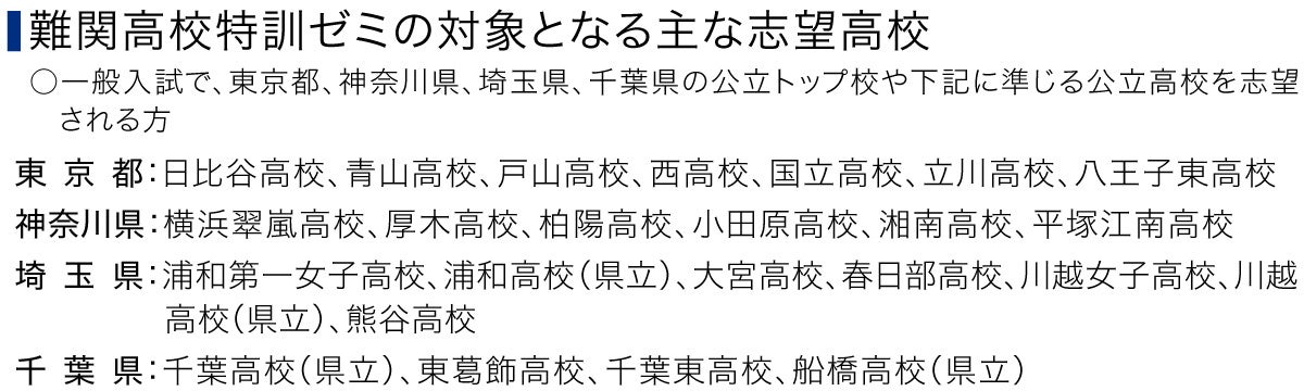 1都3県の公立トップ校をめざす中3生を対象とした入試突破力を養成する“入試特訓ゼミ”を開講