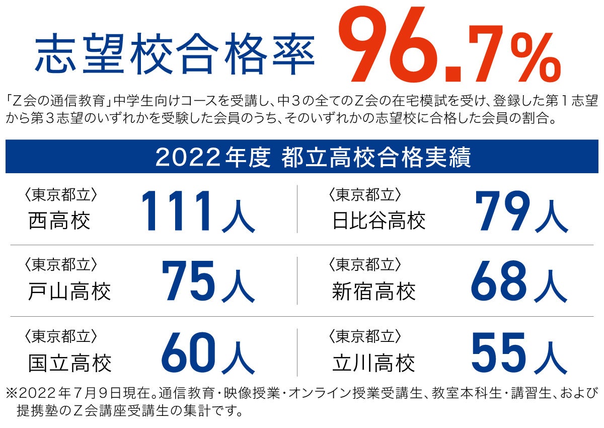 株式会社増進会ホールディングス(Z会グループ)のグループ会社である株式会社Z会は、「Z会の通信教育」中学生向けコースにおいて、都立日比谷高校・都立⻄高校および東京都・神奈川県・埼玉県・千葉県の公立トップ高校をめざす中3生を対象とするオンライン難関攻略ゼミ「日比谷特訓ゼミ」・「⻄特訓ゼミ」・「難関高校特訓ゼミ」を9月から開講(少人数制・先着順)します。(2022年8月2日より予約受付中。)