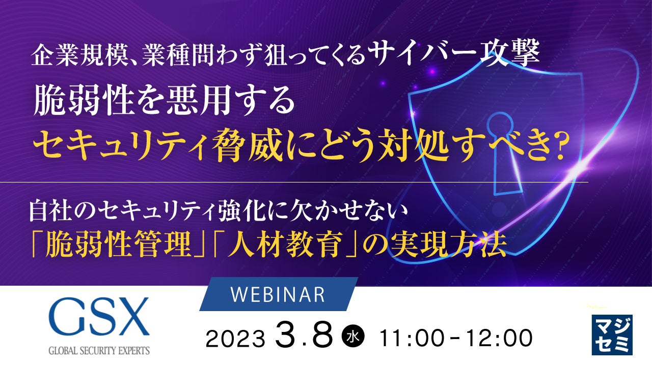 マジセミ株式会社は「脆弱性管理」「人材教育」の実現方法というテーマのウェビナーを開催します。