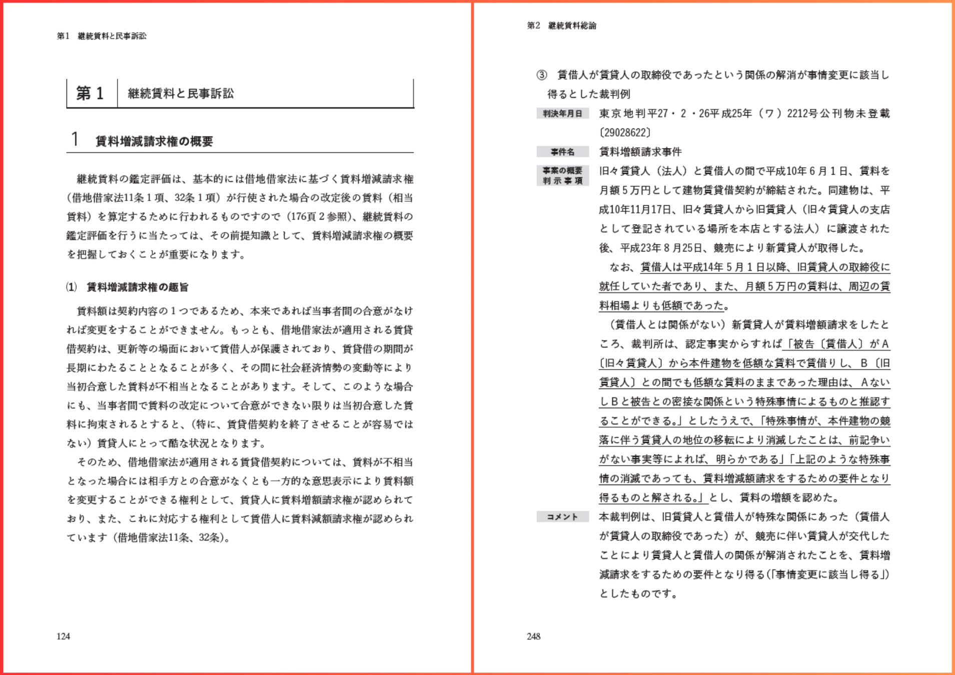 平成26年の不動産鑑定評価基準改正後の裁判例を踏まえ、その判断傾向を整理・分析しているため、賃料鑑定における最新実務をしっかりと把握することができます。