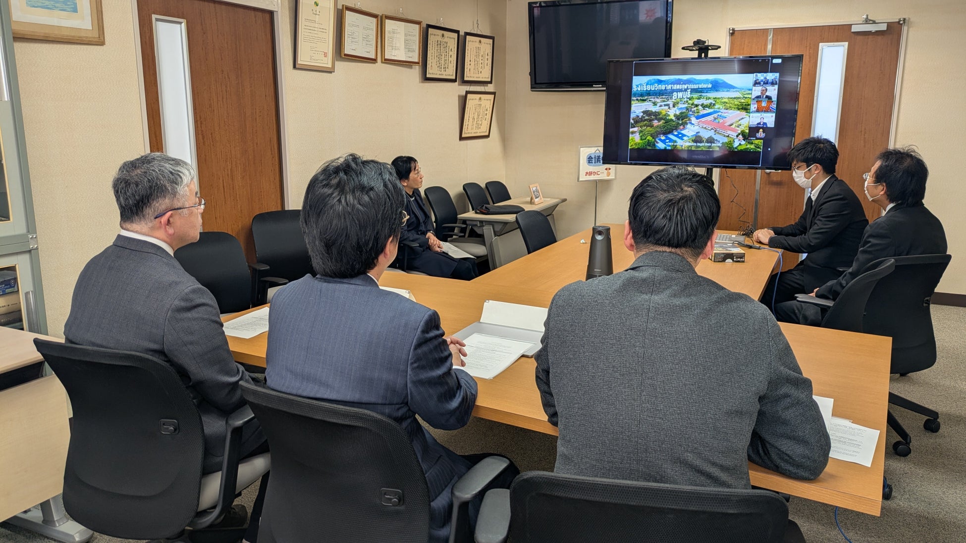 当日は、両校の紹介や交流に関する説明の後、PCSHSロッブリー校のSakda Khamso校長と鳥羽商船高専の澤田圭樹副校長が協定書等に署名しました。Sakda校長は、「本協定が両校の連携の重要な第一歩となり、学生・教員の交流や文化理解の深化につながることに期待している」などと述べました。また、澤田副校長は「今回の提携を契機として相互理解を深め、両国の若い才能がともに学び成長していくことを期待しています」と挨拶を述べました。