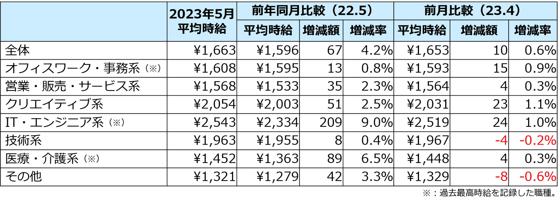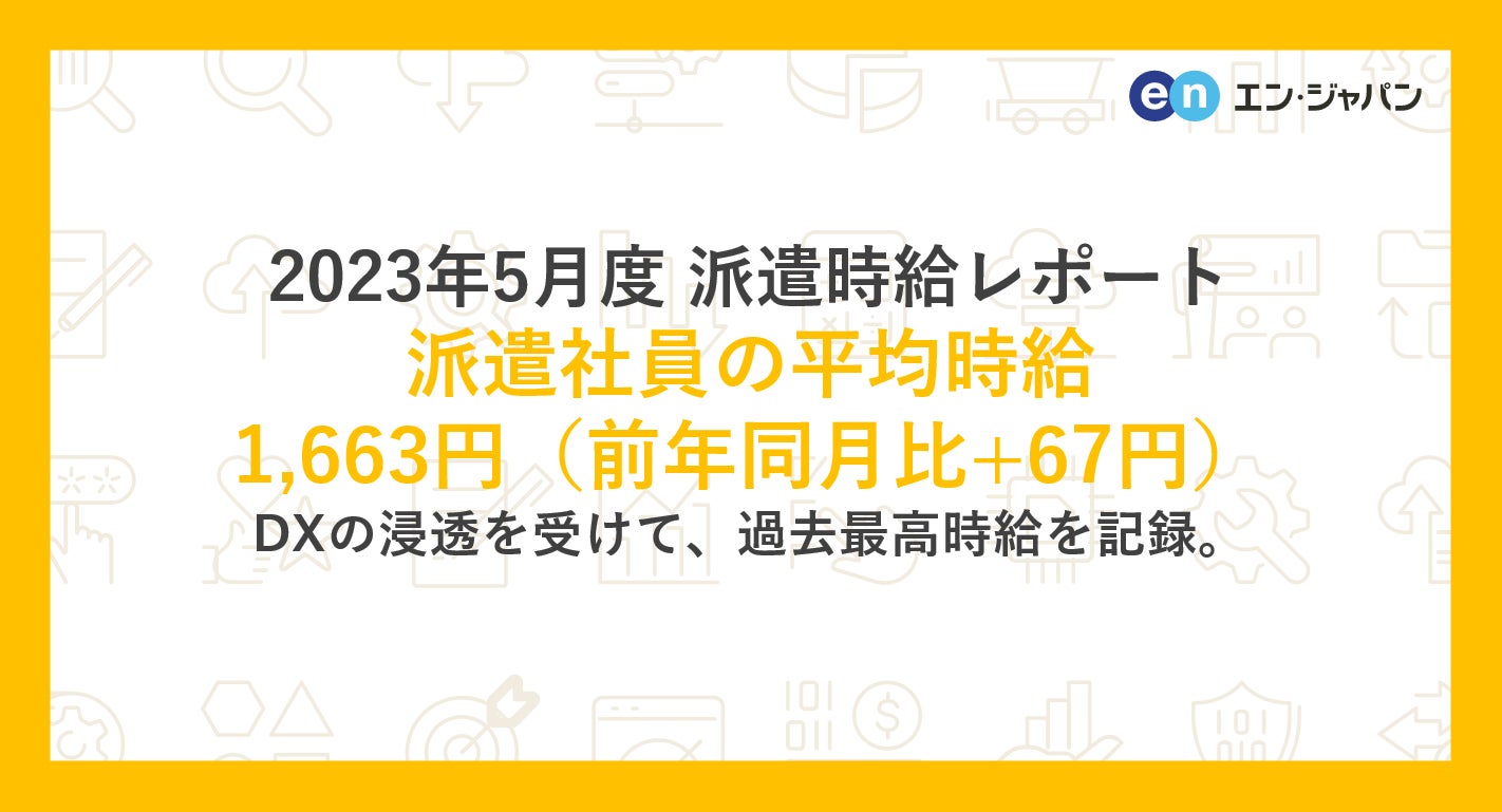 2023年5月度 派遣社員の平均時給は1,663円DXの浸透を受けて、過去最高時給を記録。