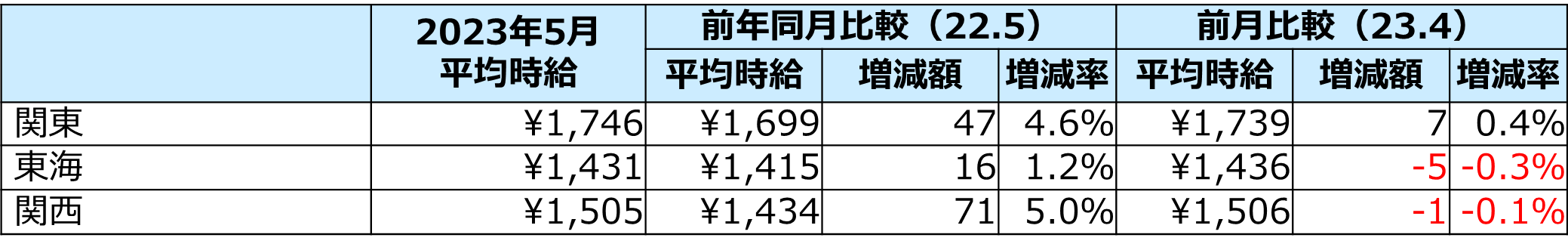 5月度のエリア別平均時給は、全エリアで前年同月比プラスを記録。