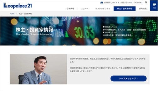 株式会社レオパレス21(東京都中野区 代表取締役社長:宮尾 文也、以下「当社」)は、主要IRサイト評価機関3社が上場企業を対象に実施したIRサイト調査において、当社のIRサイト(株主・投資家情報)が高評価を獲得しましたので、お知らせします。