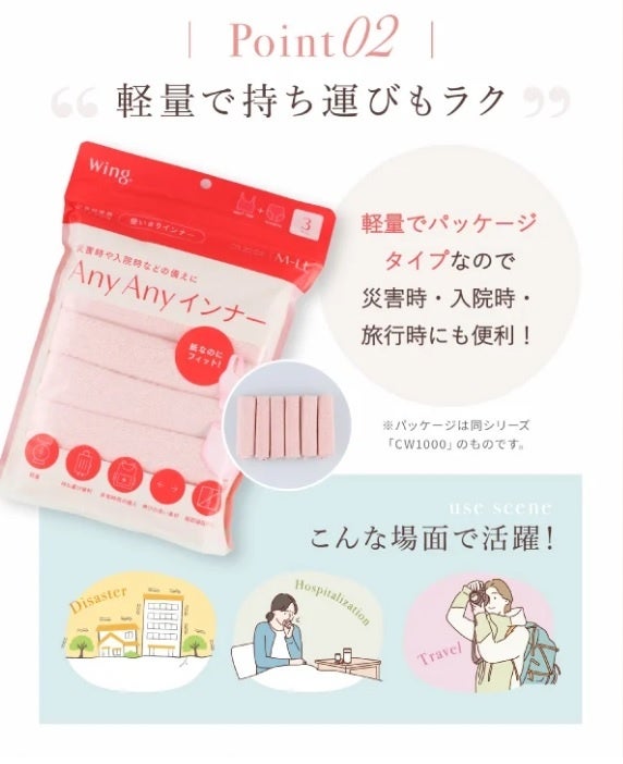 ワコールでは、災害時の備えとして「防災リュックに入れておきたいおすすめの下着」を提案。紹介する商品は、全国の取扱店舗、ワコールウェブストアをはじめとするECサイトで販売しています。