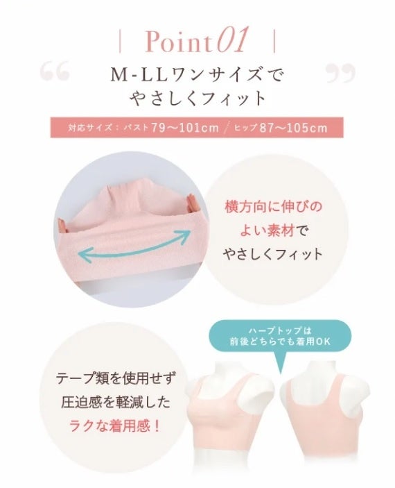 眠るときのバストを独自構造でささえ、適正な位置に安定。睡眠中のバストの不快感をやわらげ、ここちよい眠りへと誘います。