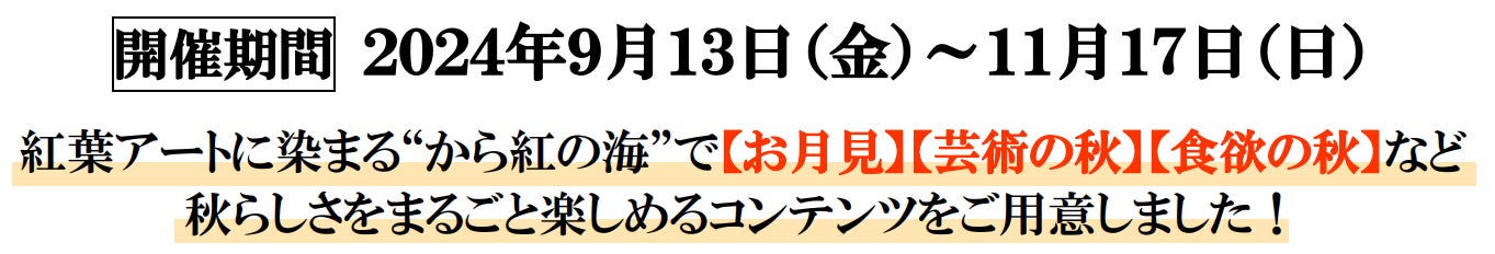 紅葉アートに染まる“から紅の海”で【お月見】【芸術の秋】【食欲の秋】など秋らしさをまるごと楽しめるコンテンツをご用意しました!