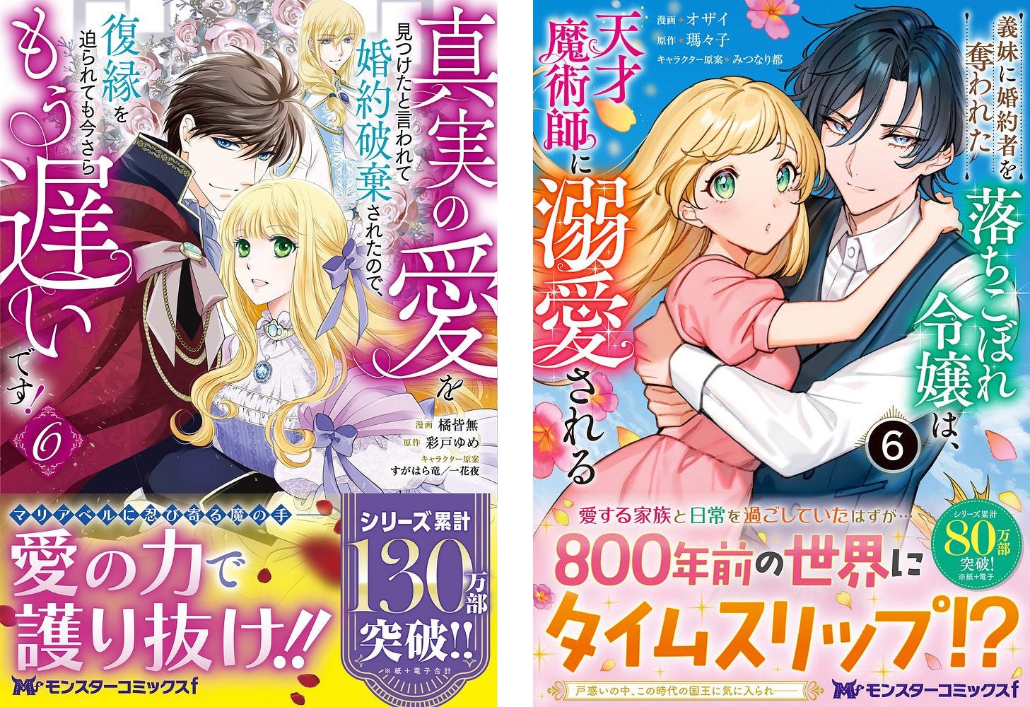 モンスターコミックスfの大人気異世界恋愛ファンタジー『真実の愛を見つけたと言われて婚約破棄されたので、復縁を迫られても今さらもう遅いです!』と『義妹に婚約者を奪われた落ちこぼれ令嬢は、天才魔術師に溺愛される』2作品の第6巻が発売されます。