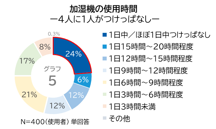・1日中つけっぱなしは約4人に1人。そのため水の補充や電気代が気になる人も。