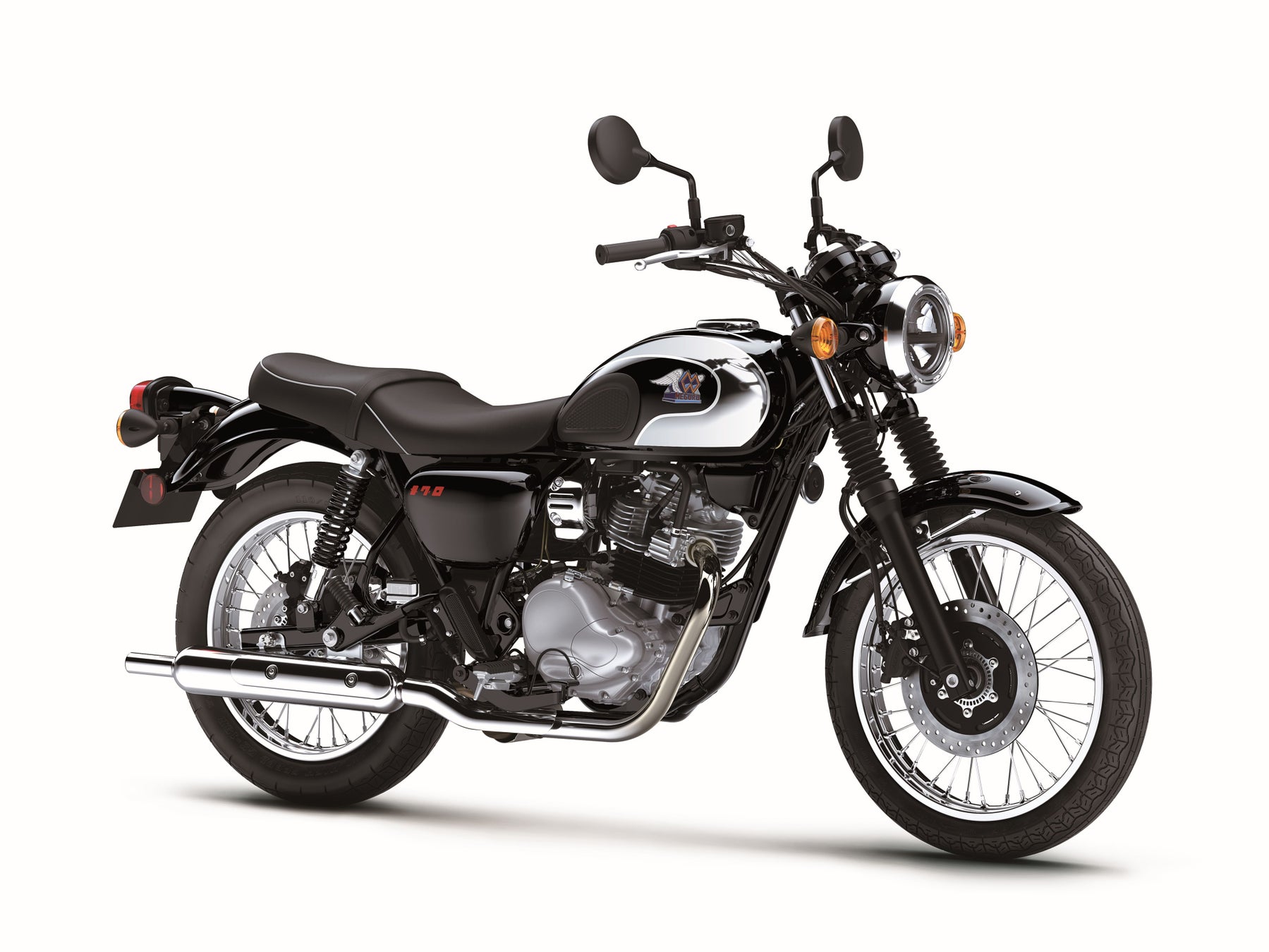 黒を基調に、効果的に配されたクロームメッキが輝くカラーリング。フューエルタンクには手作業で色付けされた「メグロ」のエンブレムがその存在を際立たせます。大型の冷却フィンを持つエンジンは、空冷4ストローク単気筒。エンジンカバー類はクラシカルな形状を持ち、かつての鉄部品を思わせる耐熱黒塗装が施されたシリンダーなど、各部にこだわりのデザインが施されています。