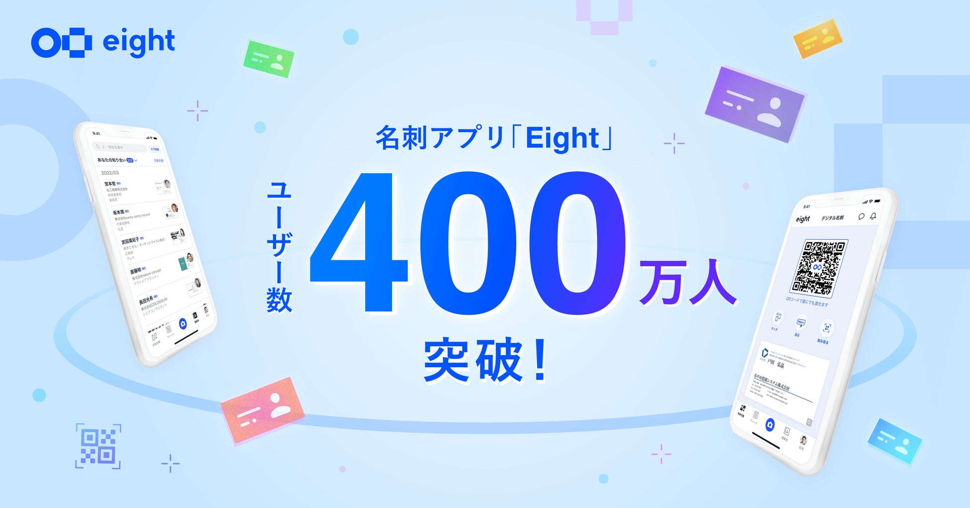 Sansan株式会社は、名刺アプリ「Eight」がユーザー数400万人を突破したことを発表します(※1)。