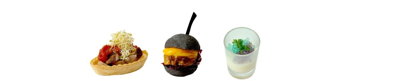セイボリーは全3種、ブースターのほのおをイメージさせるスパイシーなチキンとピリ辛のホットソースを合わせたタルトやブラッキーのような色の肉厚ミニバーガー、グレイシアの放つ宝石のようなダイヤモンドダストを表現したジュレをのせたムースがラインナップし、イーブイフレンズが大集合!