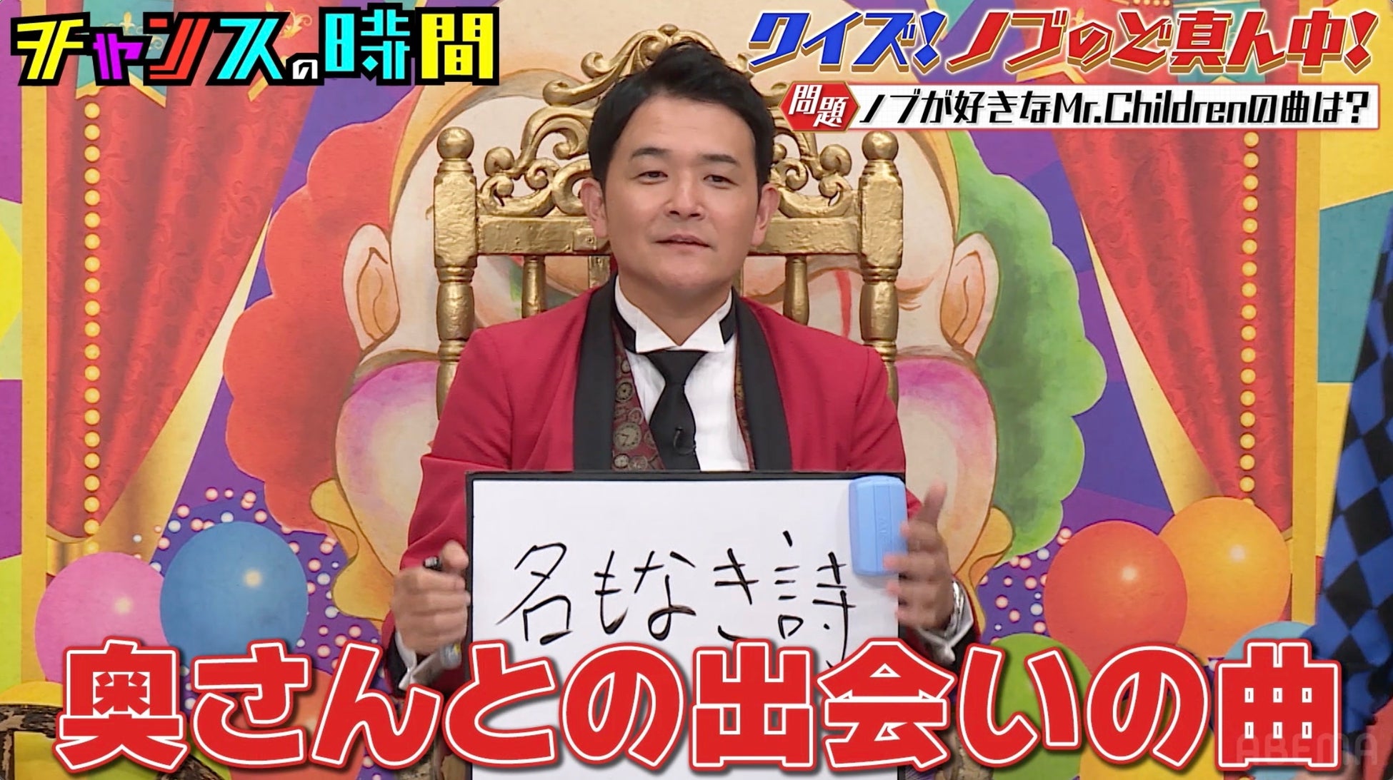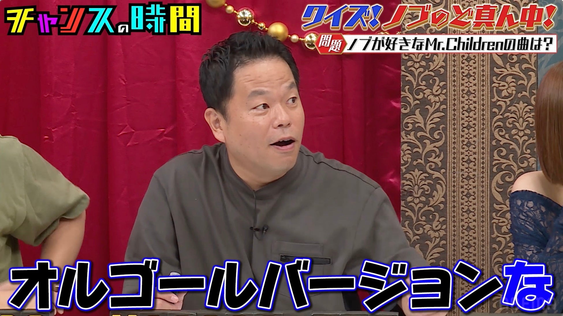 クイズでは、「好きなMr.Childrenの曲は?」という問題で『名もなき詩』と答えたノブさんが「奥さんとの出会いの曲」と妻との馴れ初めを語る場面も。「(奥さんが)学校で『Mr.Children好き』って言ってたのを聞いて、CDをプレゼントした」と微笑ましいエピソードを披露したノブさんでしたが、すかさず大悟さんが「オルゴールバージョンな」と補足。まさかの真実に解答者たちは「オルゴールバージョン!?」「やだ〜」と爆笑しました。