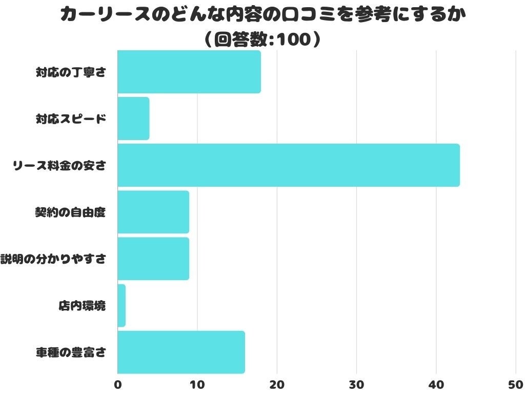 カーリースのどんな内容の口コミを参考にするかをアンケートにて調査したところ、1位は「リース料金の安さ」でした。