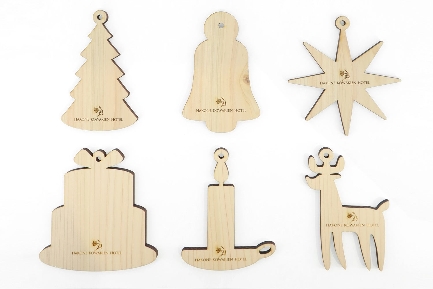 箱根ホテル小涌園では、持続可能な社会を目指す活動の一環として2023年のグランドオープン当初から、かながわの木を使い森林を守り育てていく運動「かながわ木づかい運動」に賛同しており、ロビーには県産の杉、大浴場のドライサウナには県産のヒノキを利用するなどホテル全体で取り組んでおります。この度は、ホテル同様に「かながわ木づかい運動」に取り組んでいる株式会社ラ・ルースとともに、さらなるサステナブルな取り組みとして高さ4mのクリスマスツリーに小田原・箱根産の間伐材「ヒノキ」を使用した6種のクリスマスオーナメントを飾り付けています。ヒノキの香りに加え、木のぬくもりが冬の箱根を温かく演出し、皆さまのクリスマスムードを盛り上げてくれます。