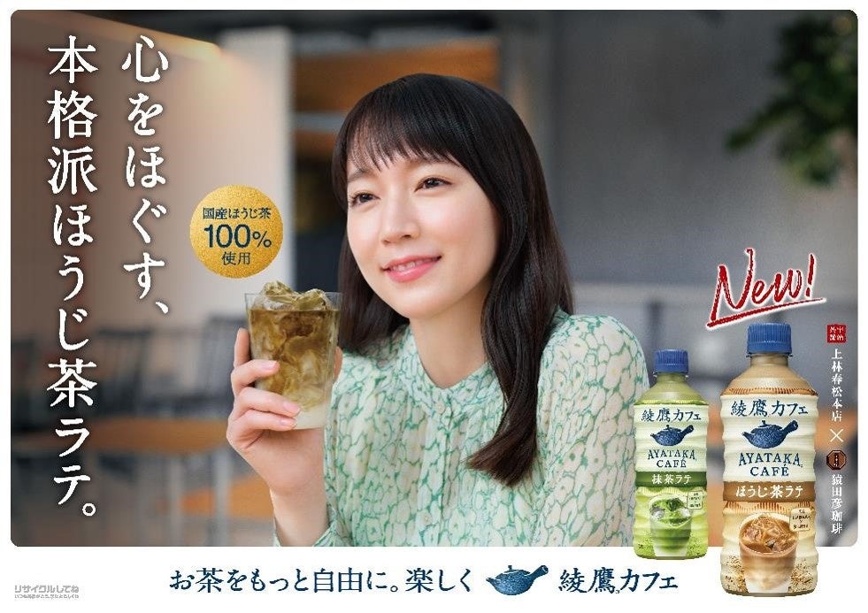 4月4日(月)から発売する同シリーズ第二弾「綾鷹カフェ ほうじ茶ラテ」(以下、「ほうじ茶ラテ」)は、「抹茶ラテ」同様、厳選された上質素材と独自製法にこだわり、国産粉ほうじ100%を贅沢に使用し、ほうじ茶の味わいを引き立てる上品なミルクの味わいをお楽しみいただけます。発売にあわせて、4月5日(火)からブランドアンバサダーの吉岡里帆さんが出演する新CMの全国放映をはじめ、大型キャンペーンを展開していきます。また、「綾鷹カフェ 抹茶ラテ」と「綾鷹カフェ ほうじ茶ラテ」を使用した公式アレンジレシピも公開します。
