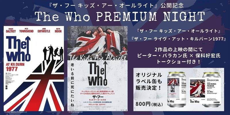 株式会社東急レクリエーション(本社:東京都渋谷区、代表取締役社長:木村知郎)は、2023年4月に開業した「東急歌舞伎町タワー」内の「109シネマズプレミアム新宿」にて、ザ・フーのドキュメンタリー映画『ザ・フー キッズ・アー・オールライト』の9月26日(金)公開を記念し、特別上映イベント“「The Who」PREMIUM NIGHT”を開催いたします。本イベントでは、ピーター・バラカン氏(ブロードキャスター)と保科好宏氏(ロック評論家/ザ・フー・ファンクラブ初代会長)によるトークショー付きで、『ザ・フー ライヴ・アット・キルバーン1977』と『ザ・フー キッズ・アー・オールライト』の豪華二本立て上映となります。