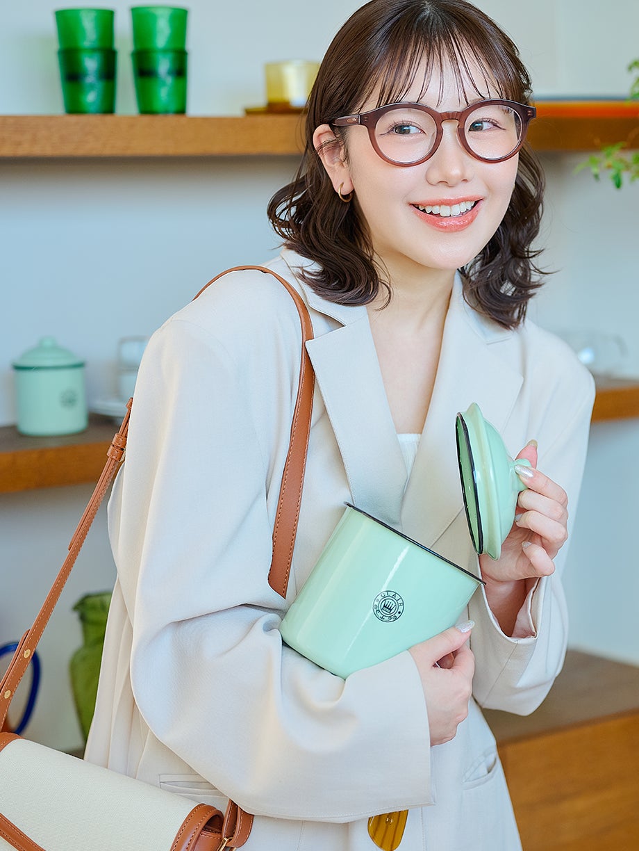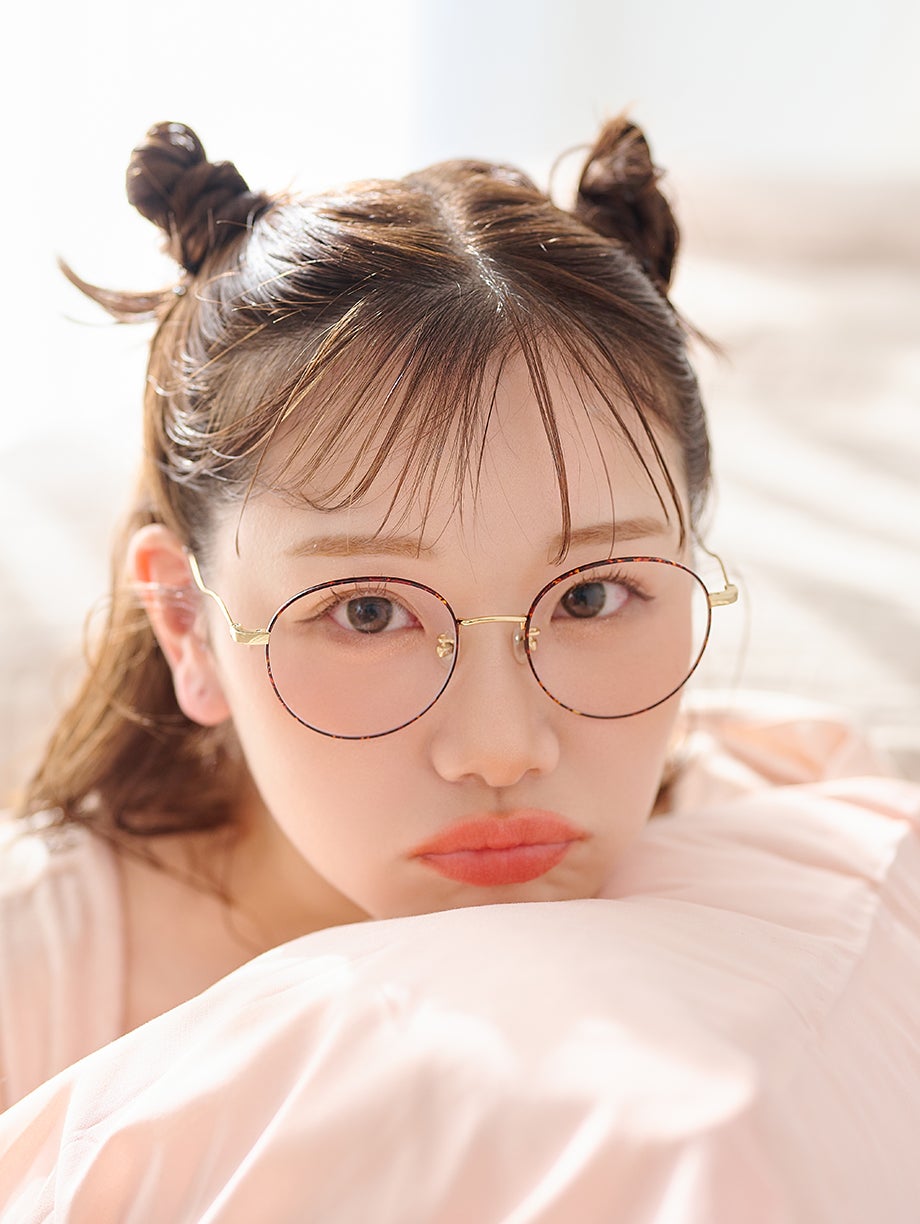 『さらっと使えるメタルフレームはフワッとした色味や素材のお洋服にあわせるのがおすすめです!軽くてかけやすい上に、横から見えるうねうねしたメタルがこだわりポイント!アクセサリー的な存在感でも使えてどんなシーンでもとにかく使いやすいです!おうちデートにも、綺麗めなお出かけにも。メガネ初心者さんでも使いやすいメガネにしてみました!』