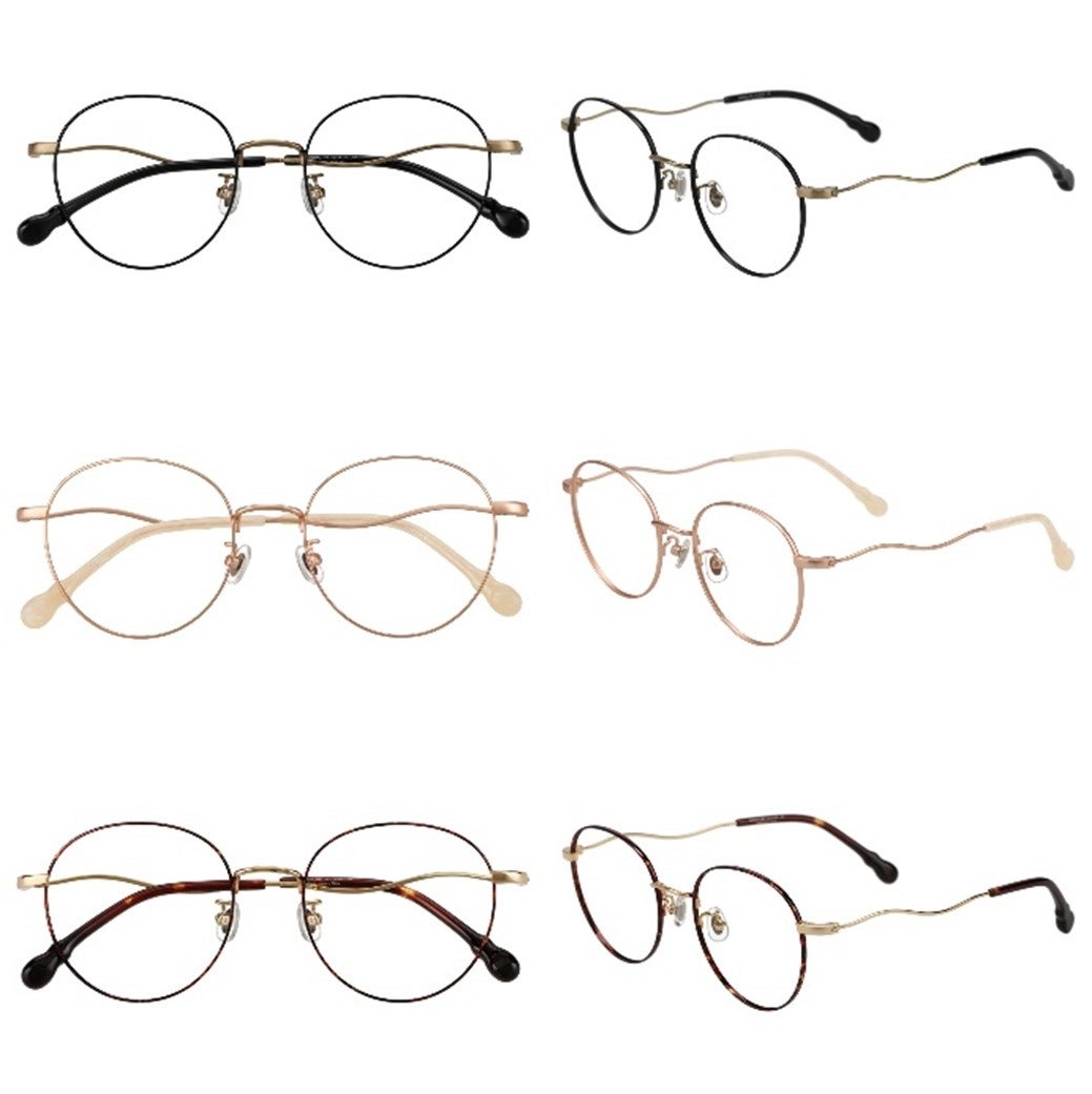 アクセサリー感覚で様々なコーデに合わせやすいメタルフレーム。大きめレンズなので、視界も広々。おうちメガネとしても可愛くかけられます。