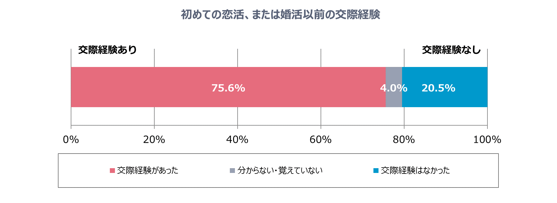 - 初めて恋活、婚活をする以前に交際経験があった人は75.6%