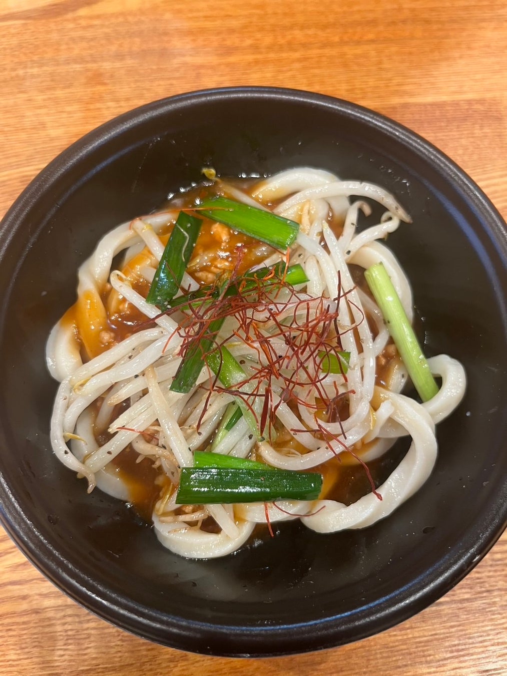 店舗では並盛りが400グラムとボリューム満点で、3キロのうどんを食べる「デカ盛りチャレンジ」にも対応している。2023年3月にオープンしたばかりだが、早くも大食いユーチューバーの御用達に。メニューも肉汁・カレー汁・旨塩汁・旨辛汁とバリエーションも豊富で卓上調味料も驚くほど充実している。そんなお客様本位の同店が今回のうどんフェアに出品するうどんは、同店人気ナンバー1の肉汁うどんの「かけ」バージョン。ぜひご賞味あれ。