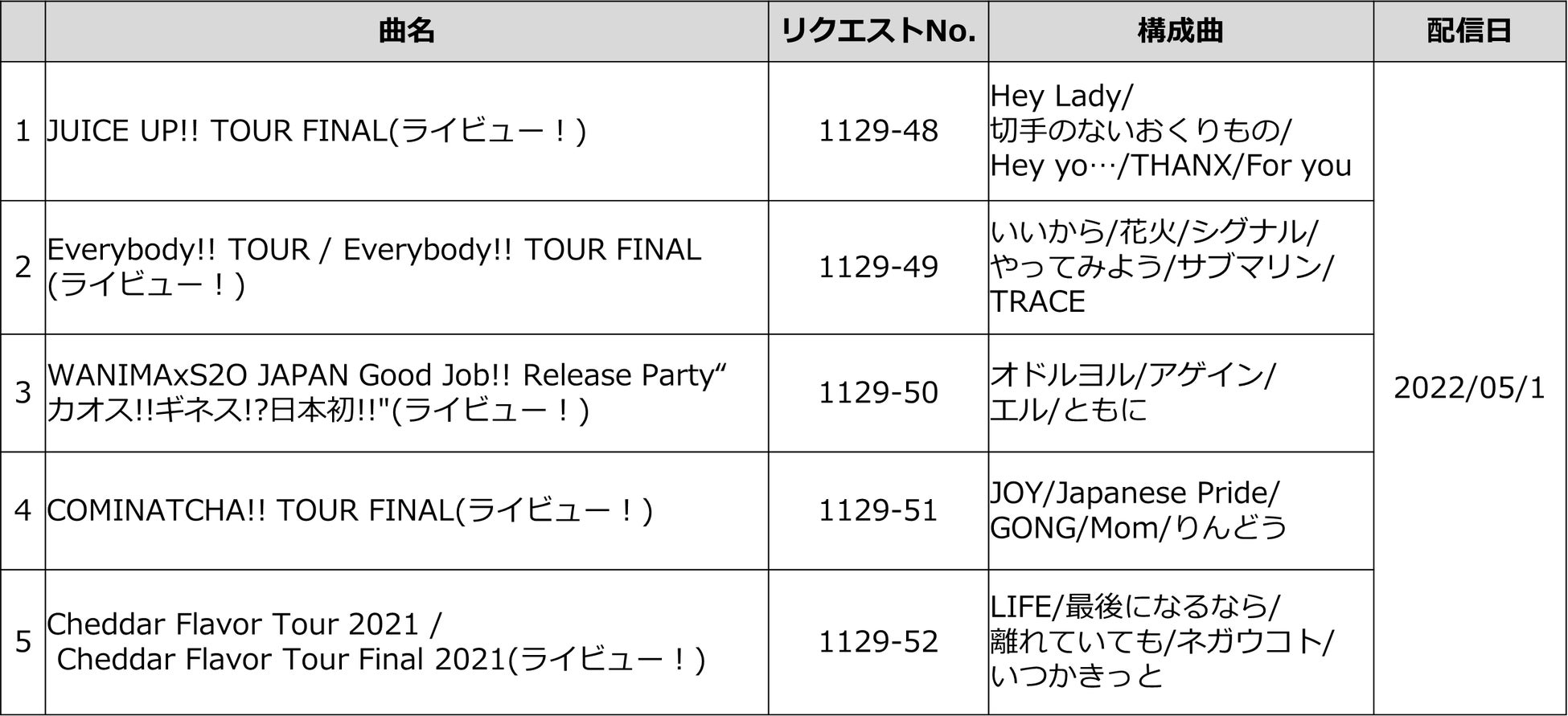 WANIMA 配信リスト*