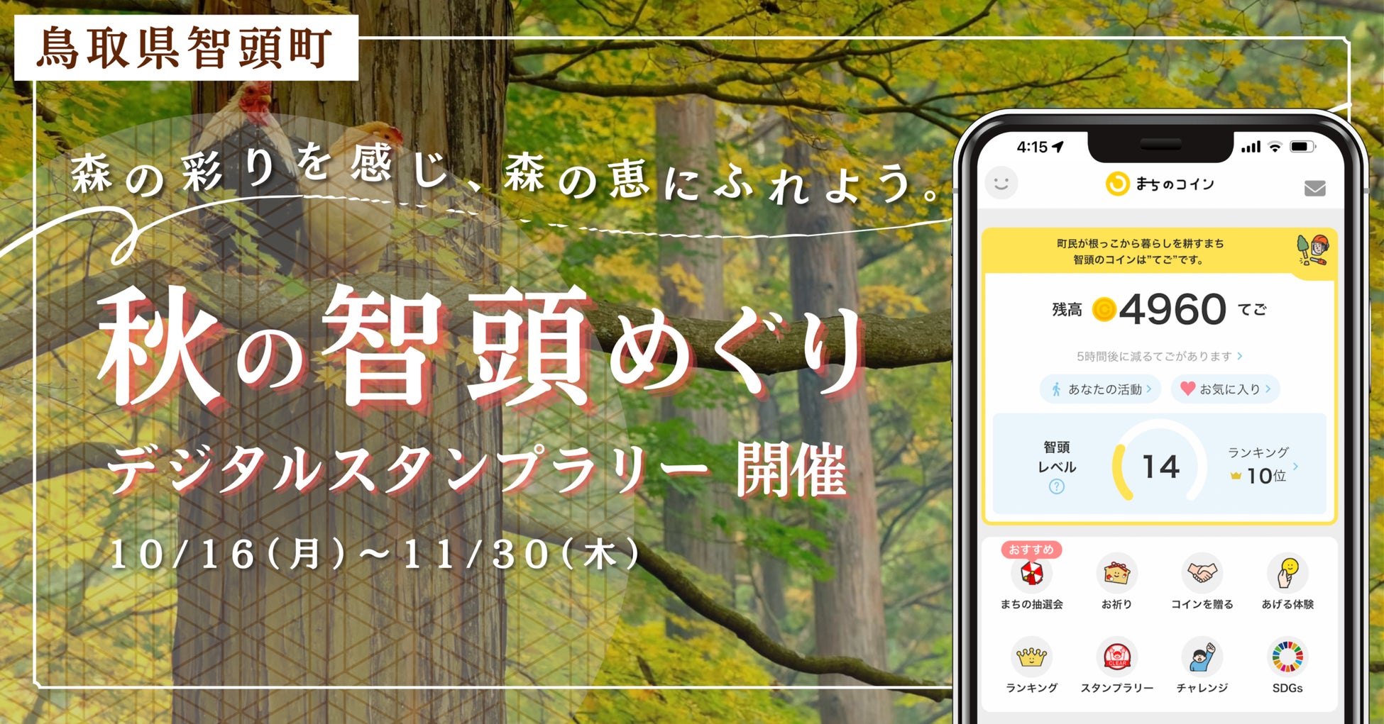 【観光DXで地域活性】コミュニティ通貨「まちのコイン」の観光デジタルスタンプラリーが鳥取県智頭町にて10月16日より開始
