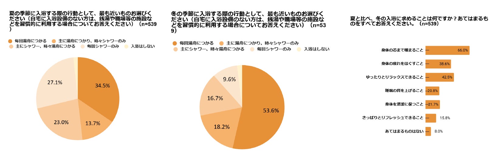 冬と夏で入浴習慣が違う!? 冬は ”湯舟” につかる傾向に。