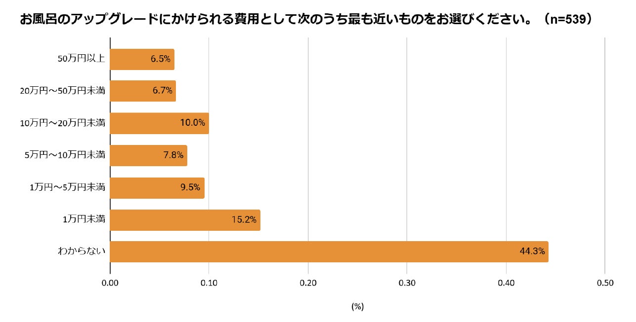 お風呂のアップグレードにかけられる費用は「10万円~20万円未満」が2番目に多い