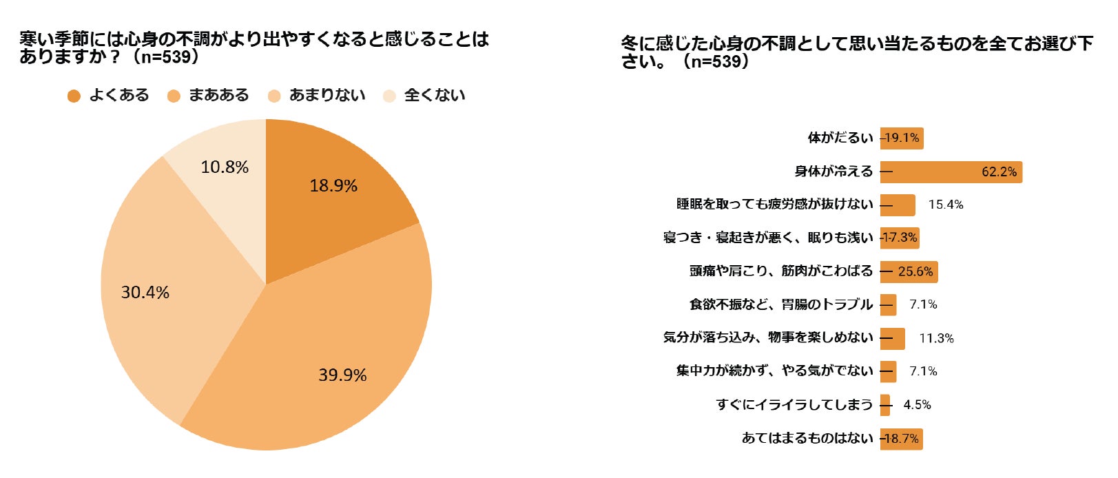 「冬バテ」のサインかも?約6割の人が、寒い季節に心身の不調がより出やすくなると回答。
