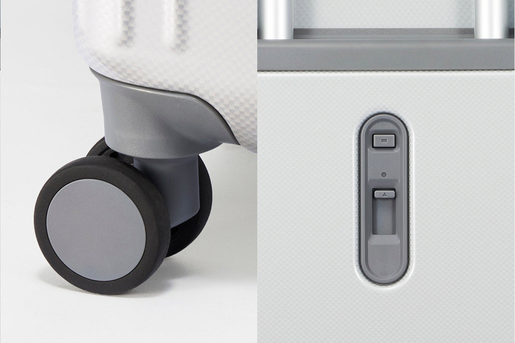 また、揺れる電車内などでの不意な走行を防ぐため、背面レバー操作で車輪を固定できるキャスターストッパーを搭載しました。
