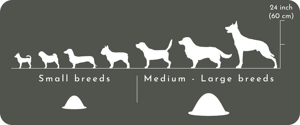 愛犬が中・小型犬種で、どのサイズが合うか心配な場合は、大きいサイズのBowlyを選ぶことをお勧めします。