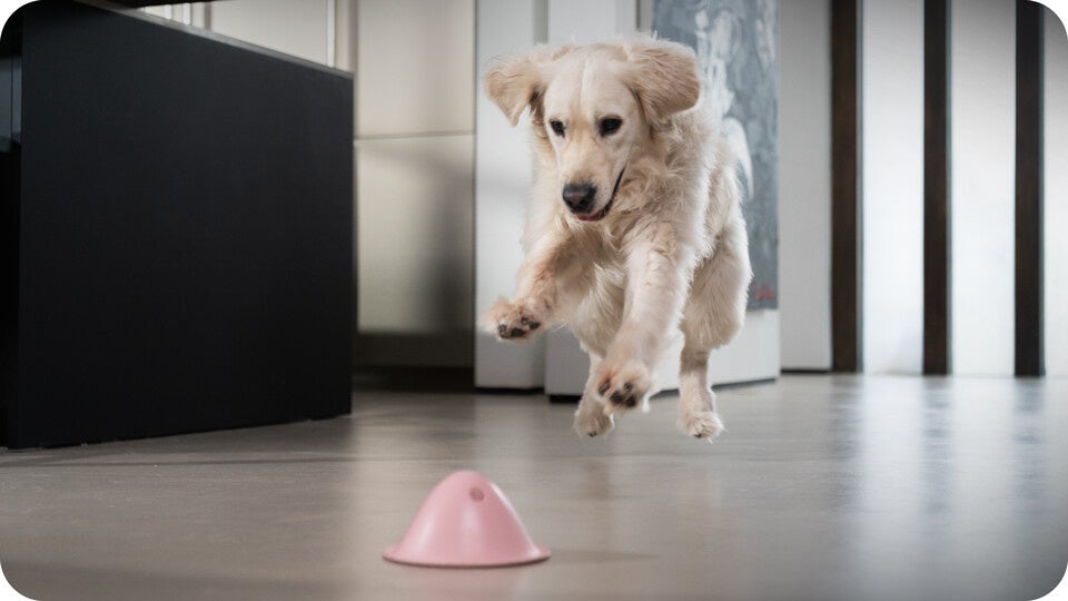 「Bowly(ボウリー)」はおやつをいれて隠して遊んだり、床面で追いかけたり捕まえたりして遊べる犬用知育トイ。