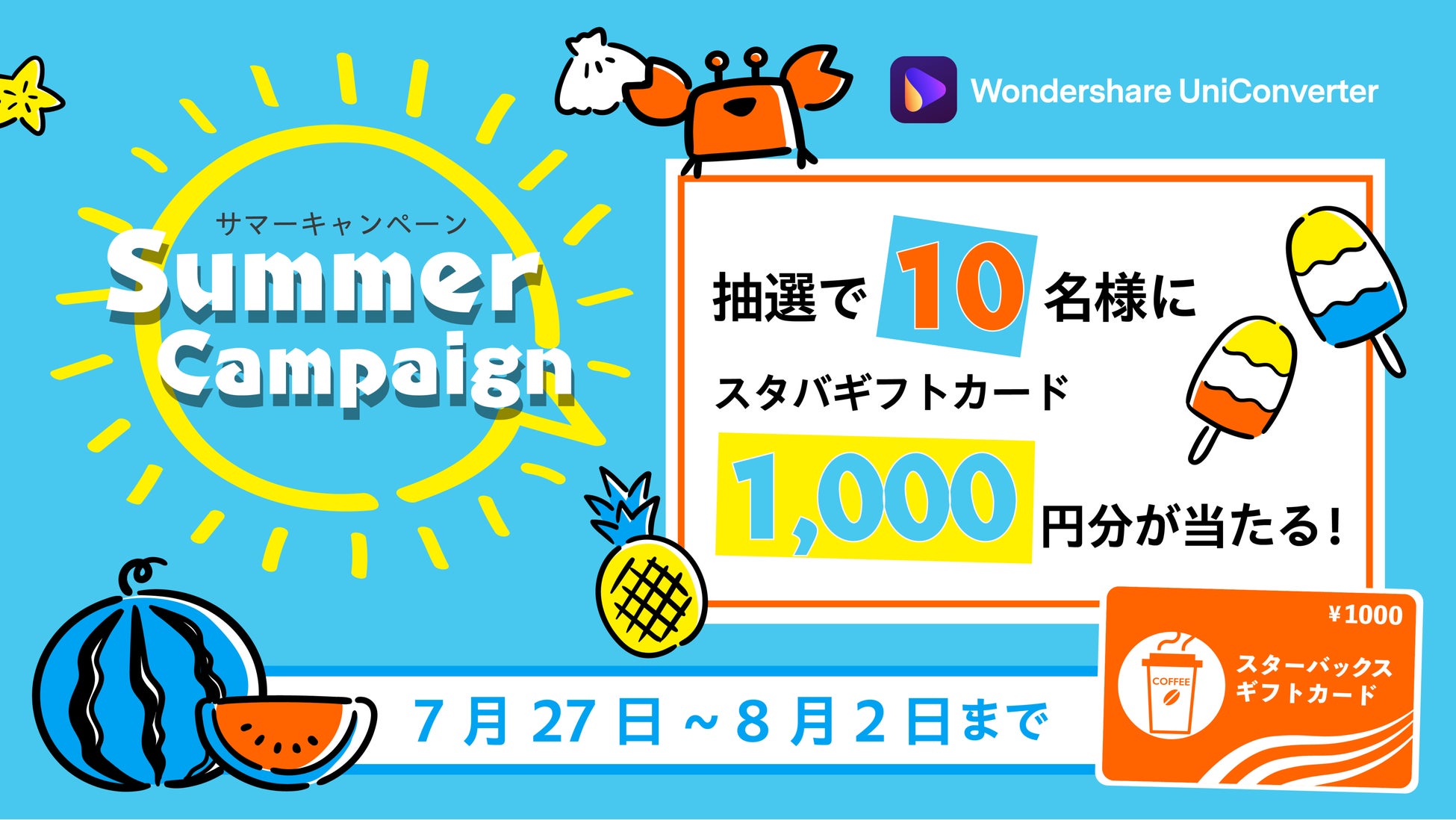 話題の新作が飲めるギフトカードを当てよう!ユニコのサマーキャンペーン開始★|Wondershare UniConverter