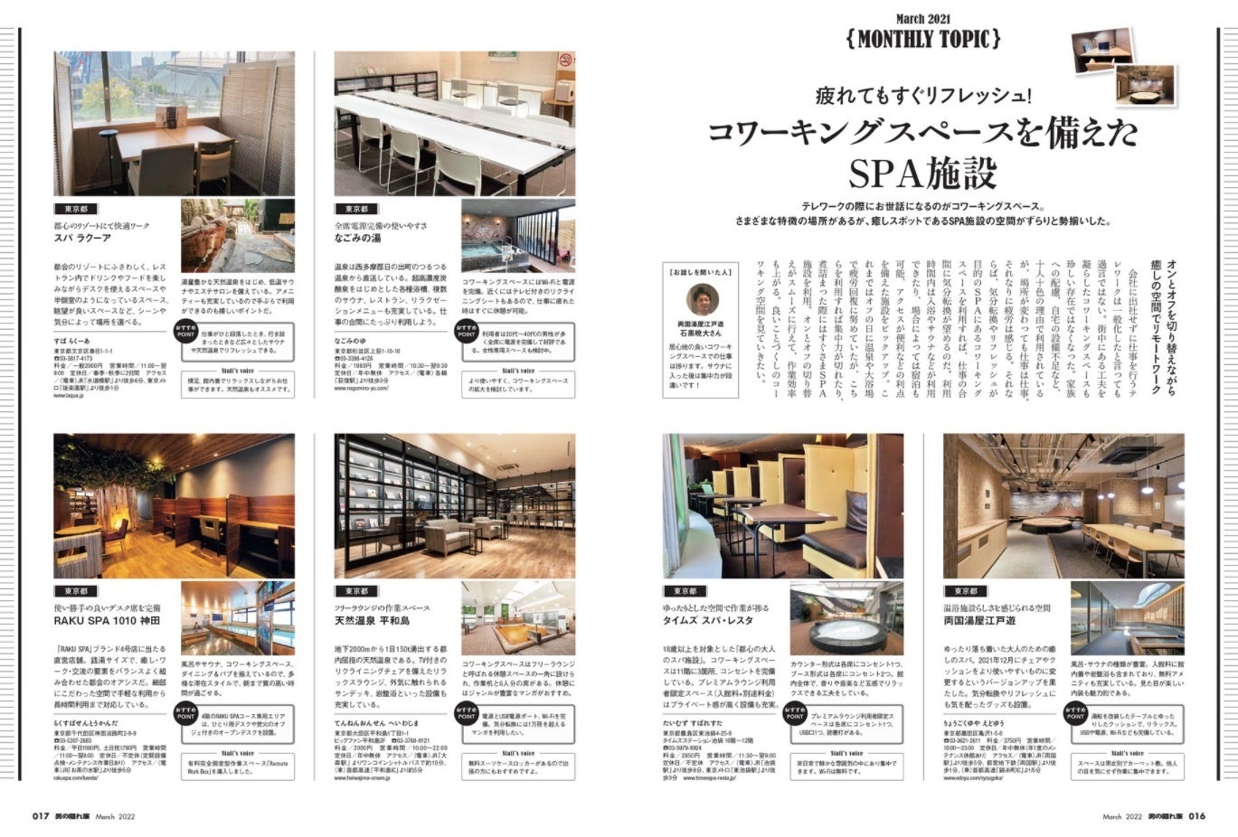 テレワークの際にお世話になるのがコワーキングスペース。様々な特徴の場所があるが、癒しスポットであるSPA施設の空間がずらりと勢揃いした。