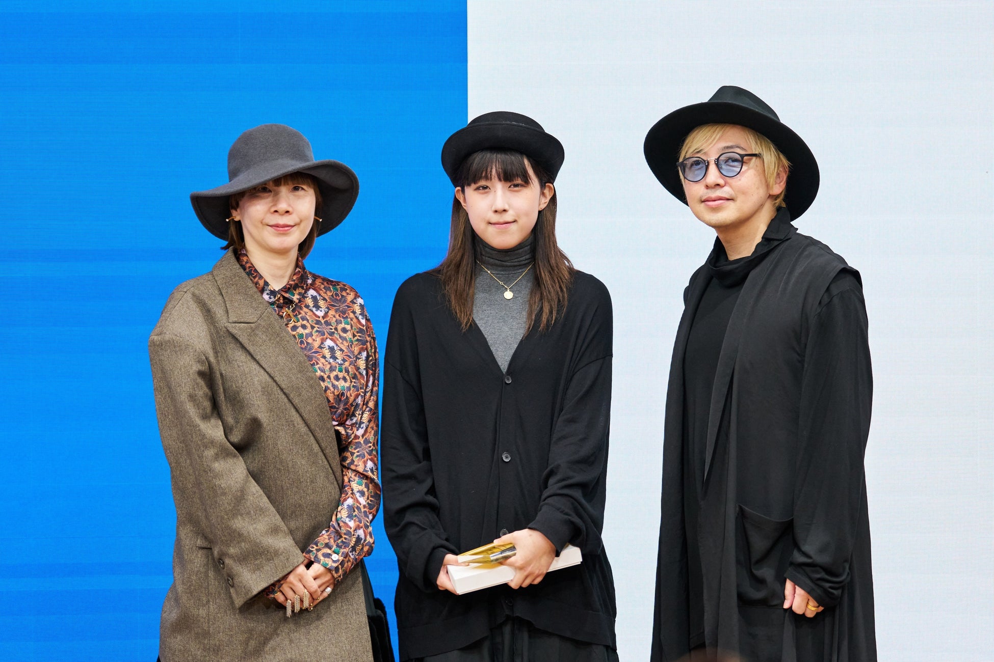 4年目を迎える2025年は「越境」をテーマに作品を募集し、多数の応募デザインの中から30作品を選定し、8月に一次審査通過者を発表いたしました。通過者にはデザイン画から帽子を実制作いただき、その中から本イベントでは、入選、優秀賞、審査員特別賞、最優秀賞を発表いたしました。最優秀賞には大倉小枝さんの『流動』、審査員特別賞にはチェンシィー恵蒔ルイースさんの『開花』が選ばれました。