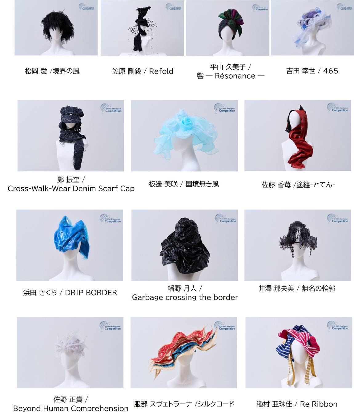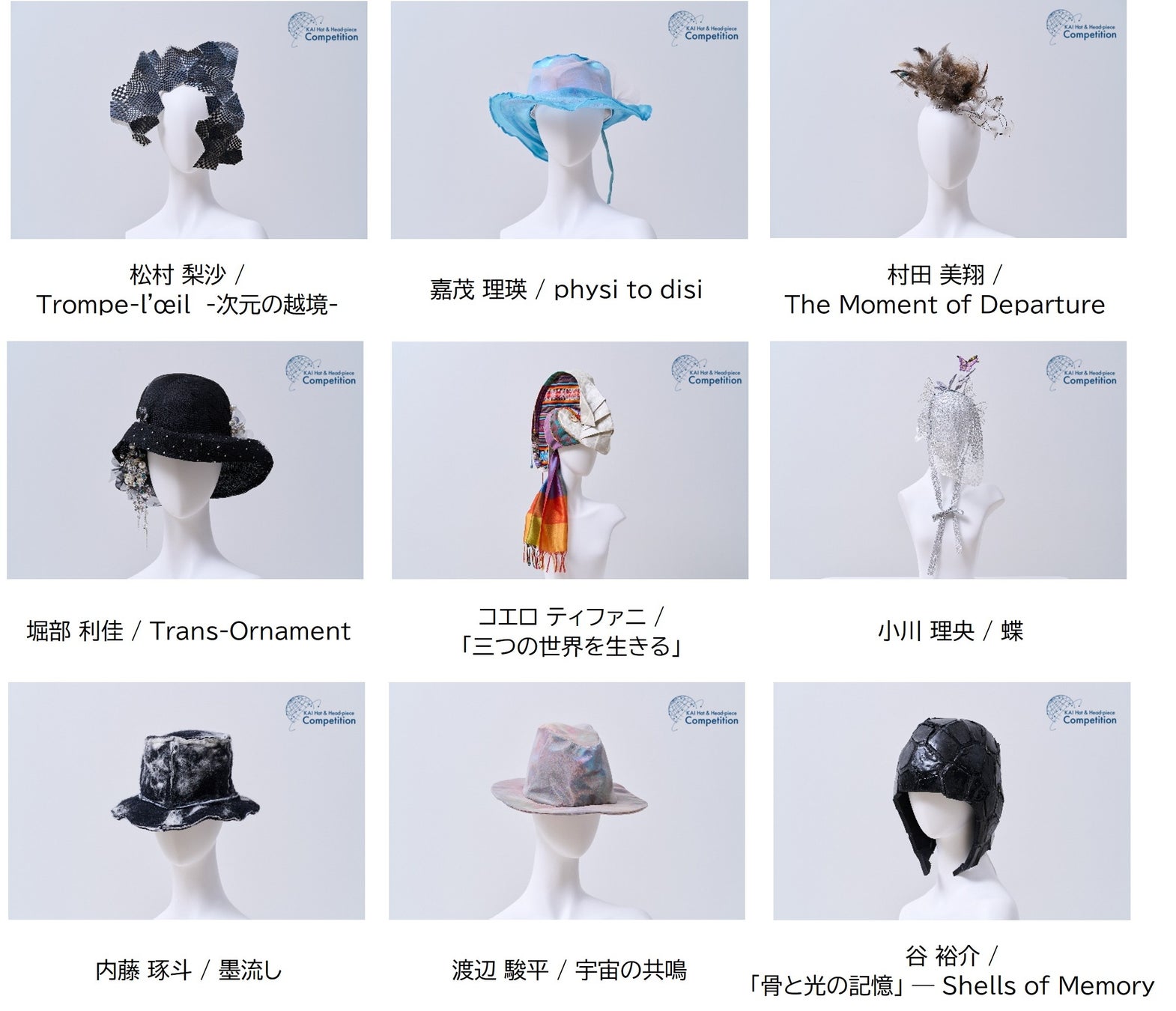 「KAI Hat & Head-piece Competition 2025」 優秀賞 受賞作品(敬称略・順不同)