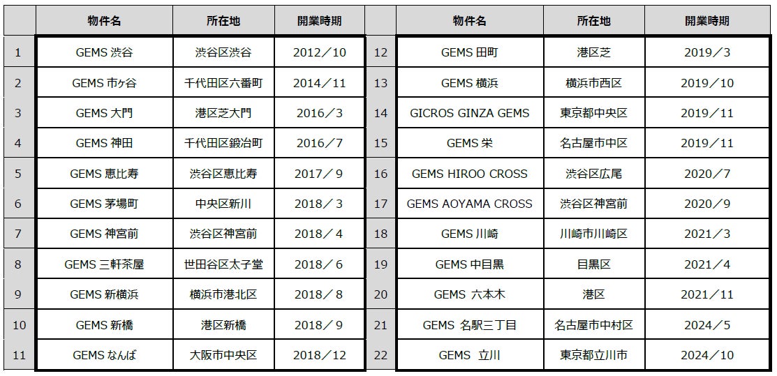 ■開発プロジェクト一覧(計22施設) https://www.gems-portal.com/
