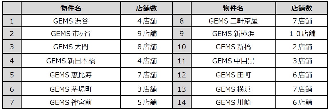 「GEMS(ジェムズ)」=英語の「GEM(ジェム)」の複数形です。「GEM(ジェム)」、それは宝石から転じ、研磨された貴石や宝石のように美しいモノ、完璧な人という意味を持ちます。「食事は、街を幸せにできる」をコンセプトに、生き生きとした宝石(店舗)がいくつも集積された 都市型商業施設として、将来に渡りその輝きを放ち続け