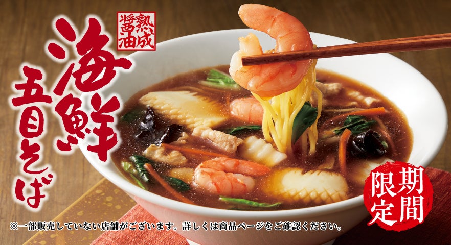 期間限定商品として発売されてから今回で3回目の販売となる人気商品「熟成醤油 海鮮五目そば」。