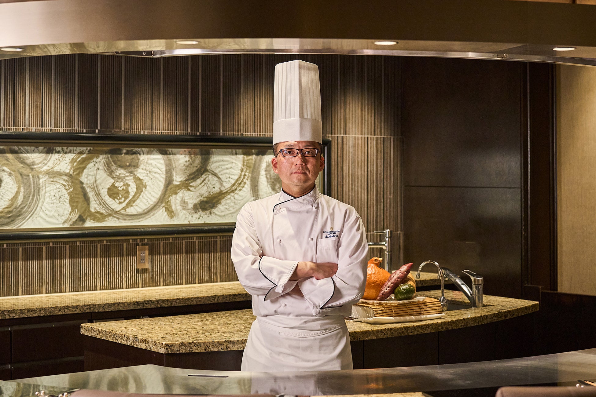 福岡県出身。1998年より神戸ベイシェラトンホテル&タワーズ、パンパシフィックホテル横浜(現 横浜ベイホテル東急)、コンラッドホテル東京、シャングリ・ラ ホテル東京など外資系ホテルで調理の経験を重ね、また2003年から2年間、在ロシア・サンクトペテルブルク日本国総領事館公邸料理人として、小泉純一郎、鳩山由紀夫元総理や国内外の著名人の宴席を担当した。2012年ホテル インターコンチネンタル 東京ベイに入社、2018年9月「鉄板焼 匠」料理長に就任。在外公館の公邸料理人として、また外資系ホテルで経験を積んできたことから、調理の技術のみならず語学も堪能。鉄板焼は日本の四季を感じさせながらも、外国のお客様にも喜ばれるよう、各国料理のテイストを加えたコース仕立てにしている。また季節ごとに最も適した食材を取り入れられるよう、仕入れ業者や各産地からの情報に常にアンテナを張っている。
