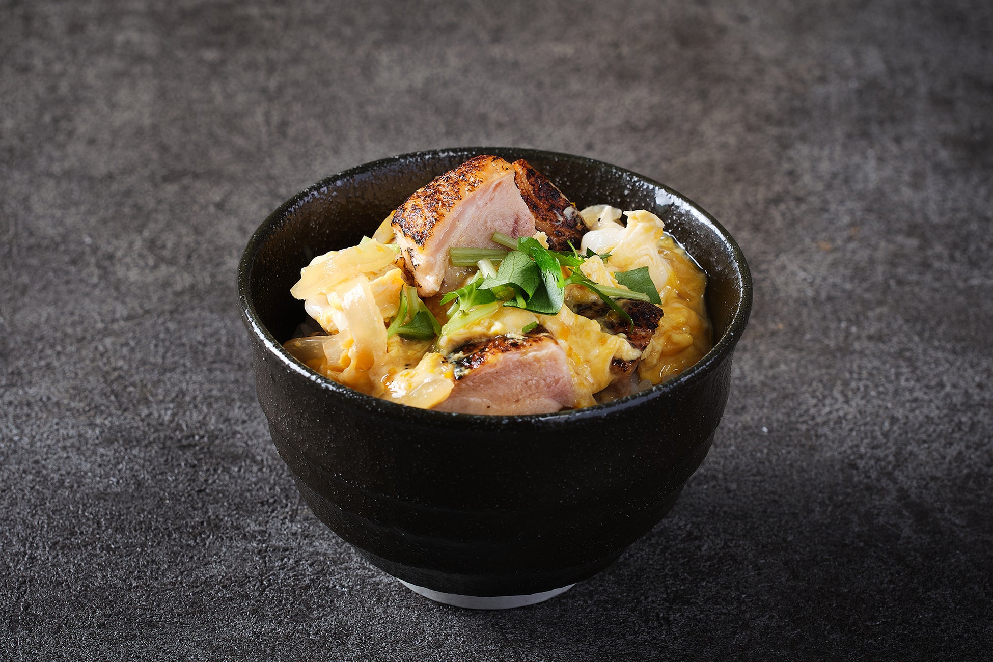 ・熊本の地鶏「天草大王」と南阿蘇の名水が生んだ「こしひかり」を使った贅沢親子丼、味噌汁と香の物