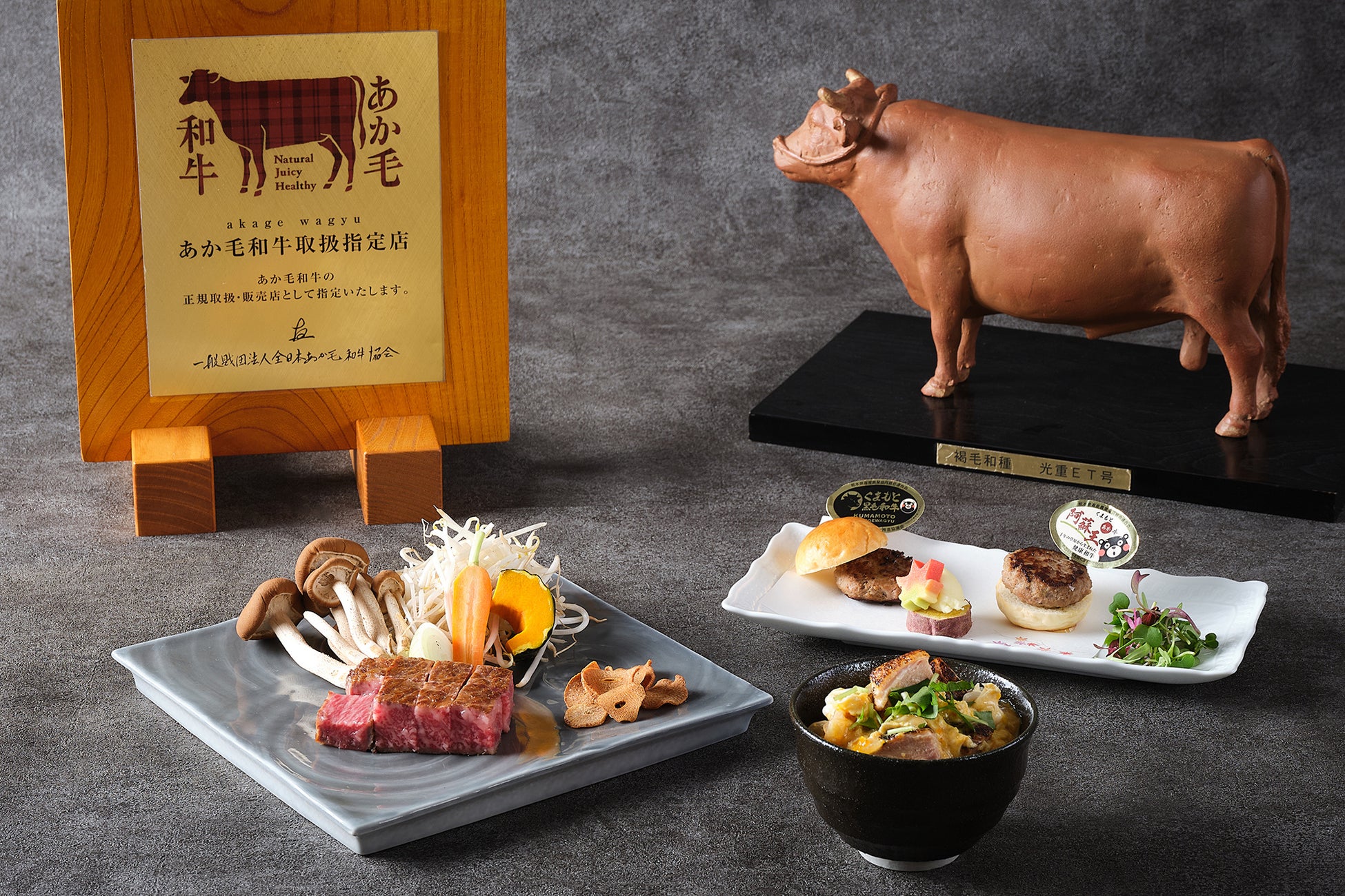 阿蘇の豊かな大地と水で育った褐毛和種(あか牛)は、和牛飼育数の約1.3%(*1)と希少な褐毛和種の牛で、赤身のコクのある味わいとヘルシーさを兼ね備えた逸品です。本フェア開催に向け産学官金の地域連携を通じて持続可能な畜産業のあり方を目指す「くまもとあか牛プロジェクト」(*2)と鉄板焼 匠の料理長 馬原が連携。産地に赴きセレクトした熊本の素材を独自にアレンジした魅力あふれるランチとディナーコースを提供いたします。