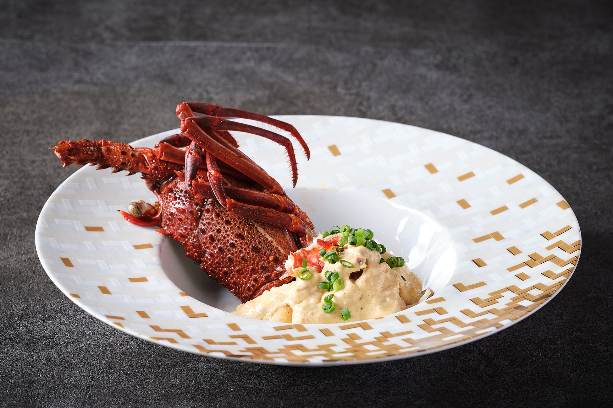 ・伊勢海老のグリル 阿蘇高森町マルキチ醤油の柚子味噌のクリームソース添え