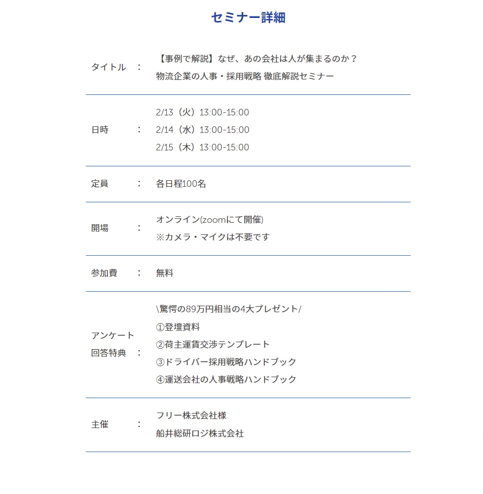 なぜ、あの会社は人が集まるのか?「物流企業の人事・採用戦略 徹底解説セミナー(フリー株式会社様主催)」に船井総研ロジコンサルタントが登壇|2024年2月13日(火)、14日(水)、15日(木)開催