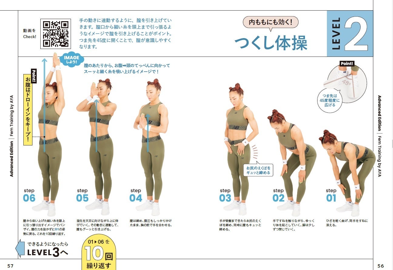 「"日本総フィットネス計画"とうたい、全国民に体を動かす楽しさを知ってほしいと活動している私ですが、じつは体を動かしたくても動かせない女性たちがいると知りました。10~20代でも骨盤底筋の弱りで、尿漏れに悩まされて運動(体育)ができなくて悩んでいるのだと。それならば、そのフェーズで悩んでいる人たちを救ってあげたいと思って、開発したのが今回のAYA式フェムトレです。目に見えないので動かしづらい筋肉ですが、イメージしやすいように表現も工夫したので、ぜひみなさんやってみてください!」