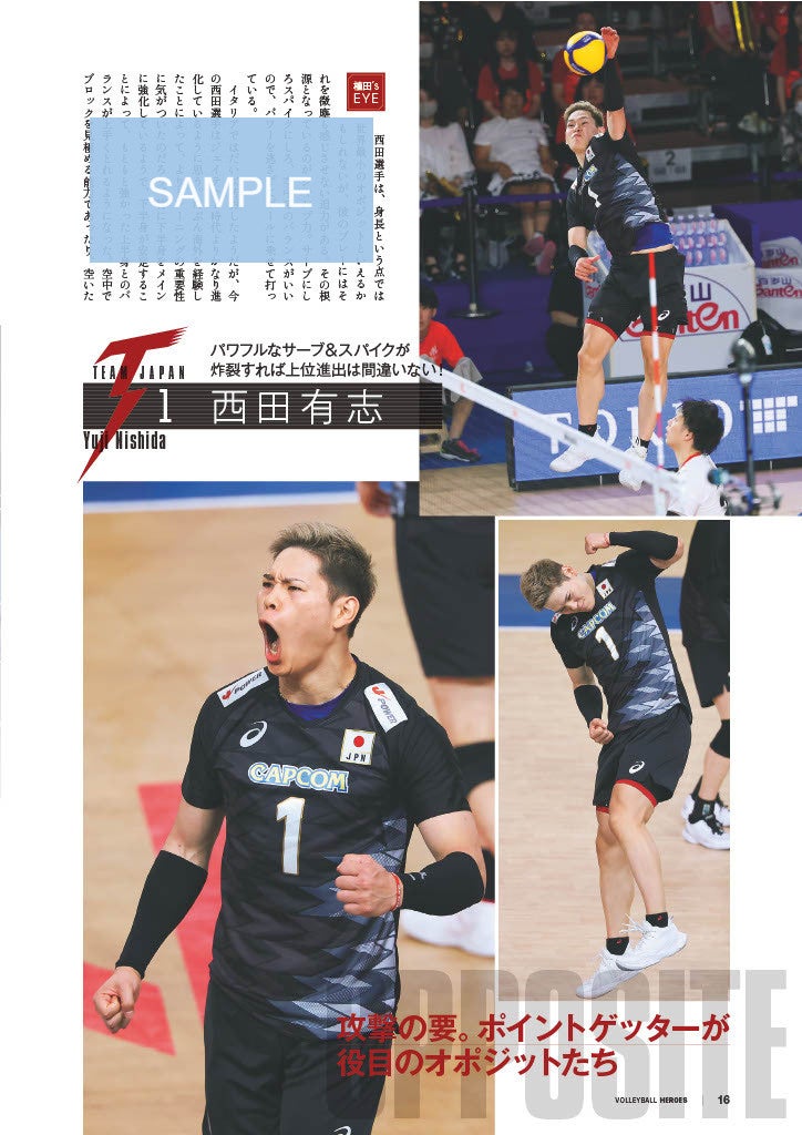 そしてこの本の目玉が付録の特大ポスター! 福岡で行われたネーションズリーグと、岩手でのドイツとの親善試合に出場した選手を含め、全31選手を一挙掲載! この迫力を実感してください。