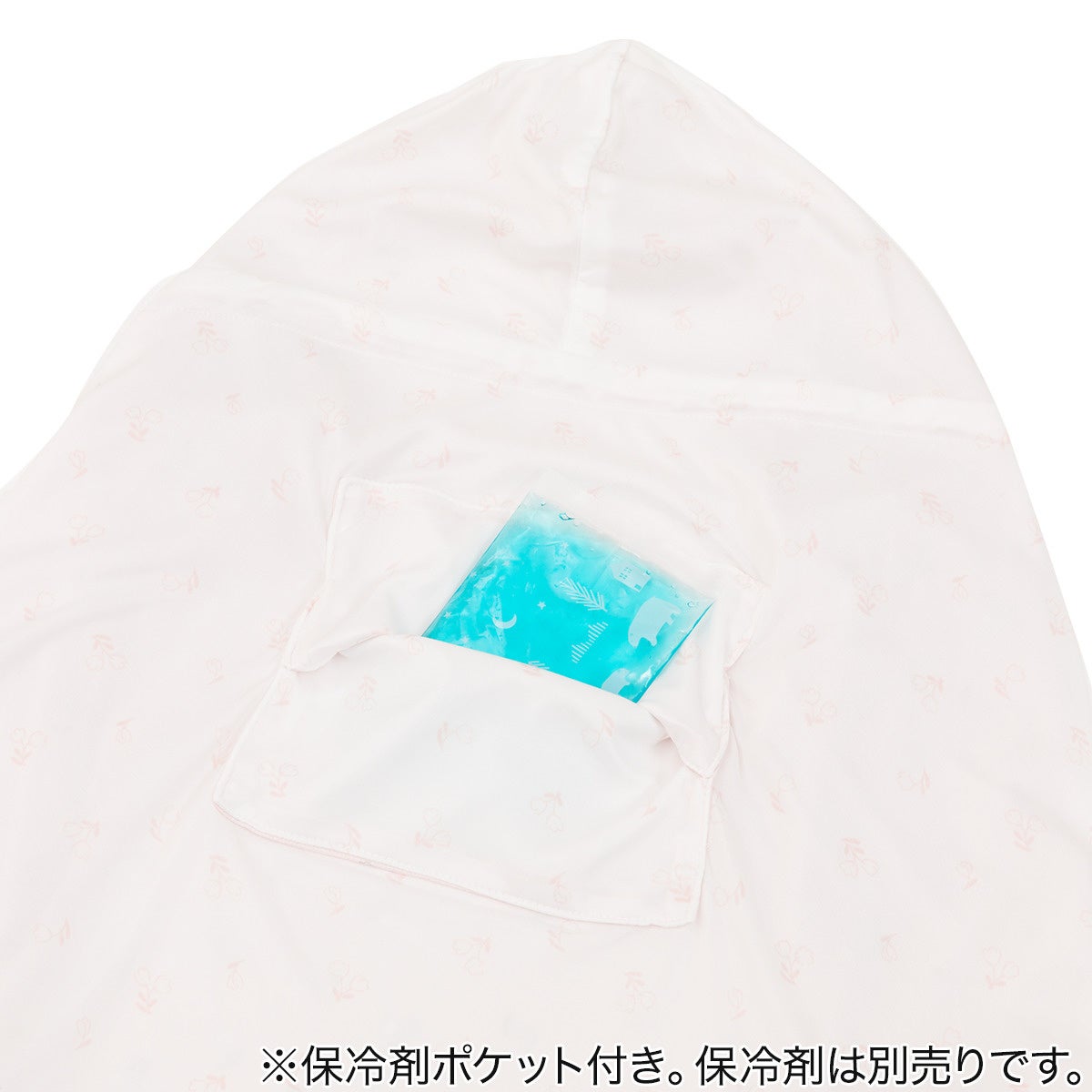 接触部分となる頭部と背中の2カ所にポケットがあり、保冷剤を入れて使用することで体温上昇を防ぎます。チャイルドシートやジュニアシートにも取り付けられるため、お出かけアイテムとして、この夏大活躍するアイテムです。吸水速乾で洗濯機洗い(ネット使用)ができ、お手入れが簡単なところもおすすめポイント。